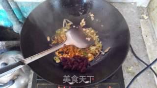 4. 加入适量的豆瓣酱,继续翻炒至红油出现。